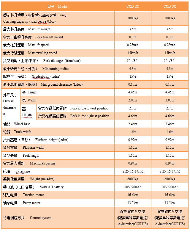 3. 采用雙油缸門架橫出結構,叉裝方便,力量大。